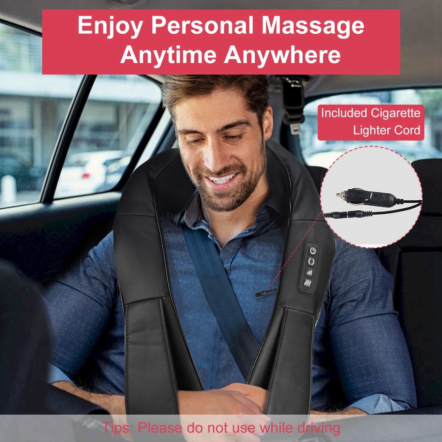 *Multiple Use & Ideal Gift*:Included US adapter power cord and cigarette lighter cord make this heating neck massager can be used in car,home and office. No need to spend expensive money and available time for massage shop,enjoy your personal massage anytime and anywhere. Besides,this kneading massager is a perfect gift for family and friends in Thanks Giving Day,Christmas,Mother’s Day,Father’s Day and so on.